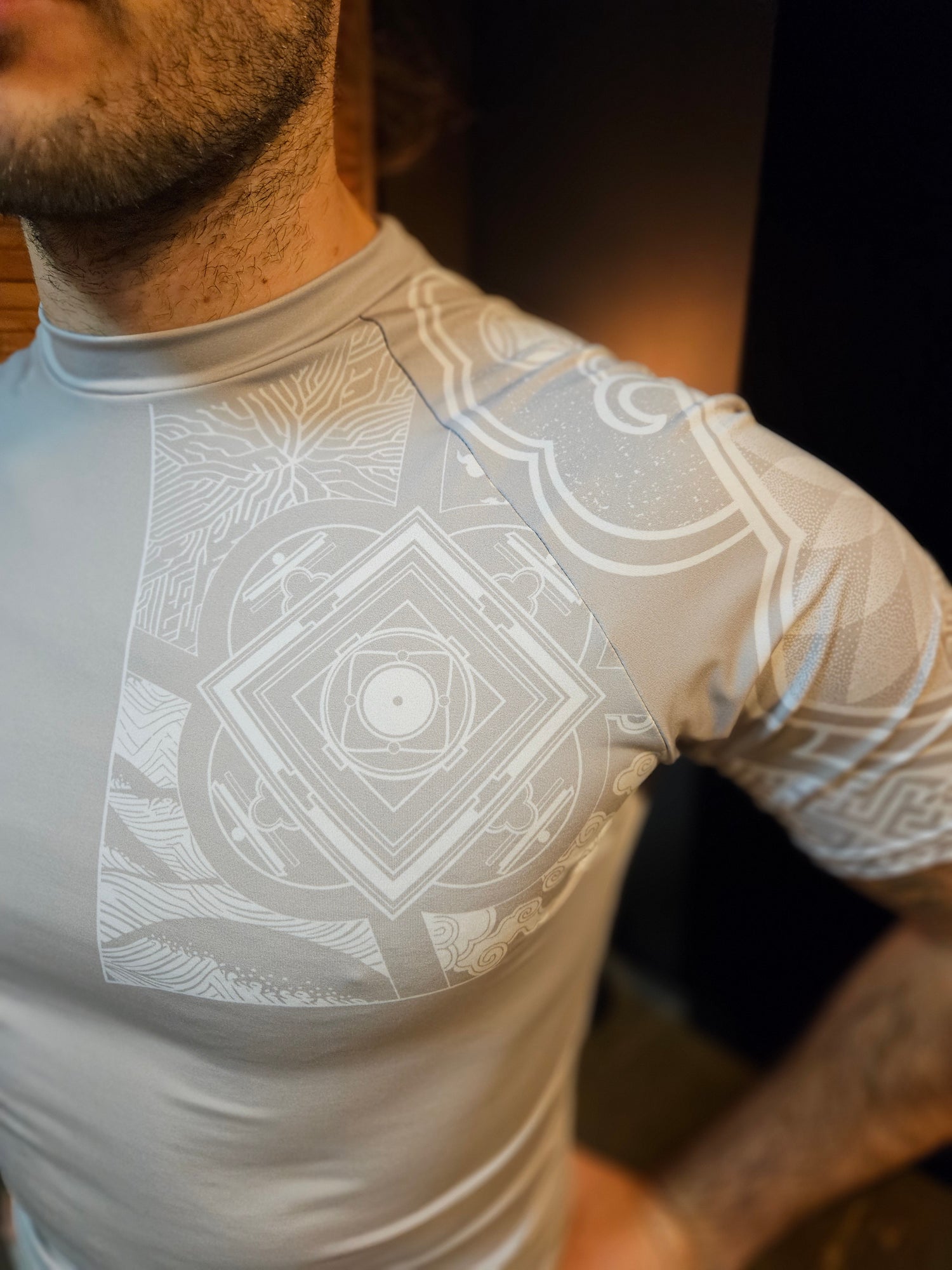 The graphic elements of our rashguard are not random, they function as a symbolic language that is activated in movement and gives its wearer qualities that shape the way they move, breathe and react.